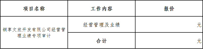 针对贵公司对铜享文旅开发有限公司经营管理业绩专项审计,我所报价如下: